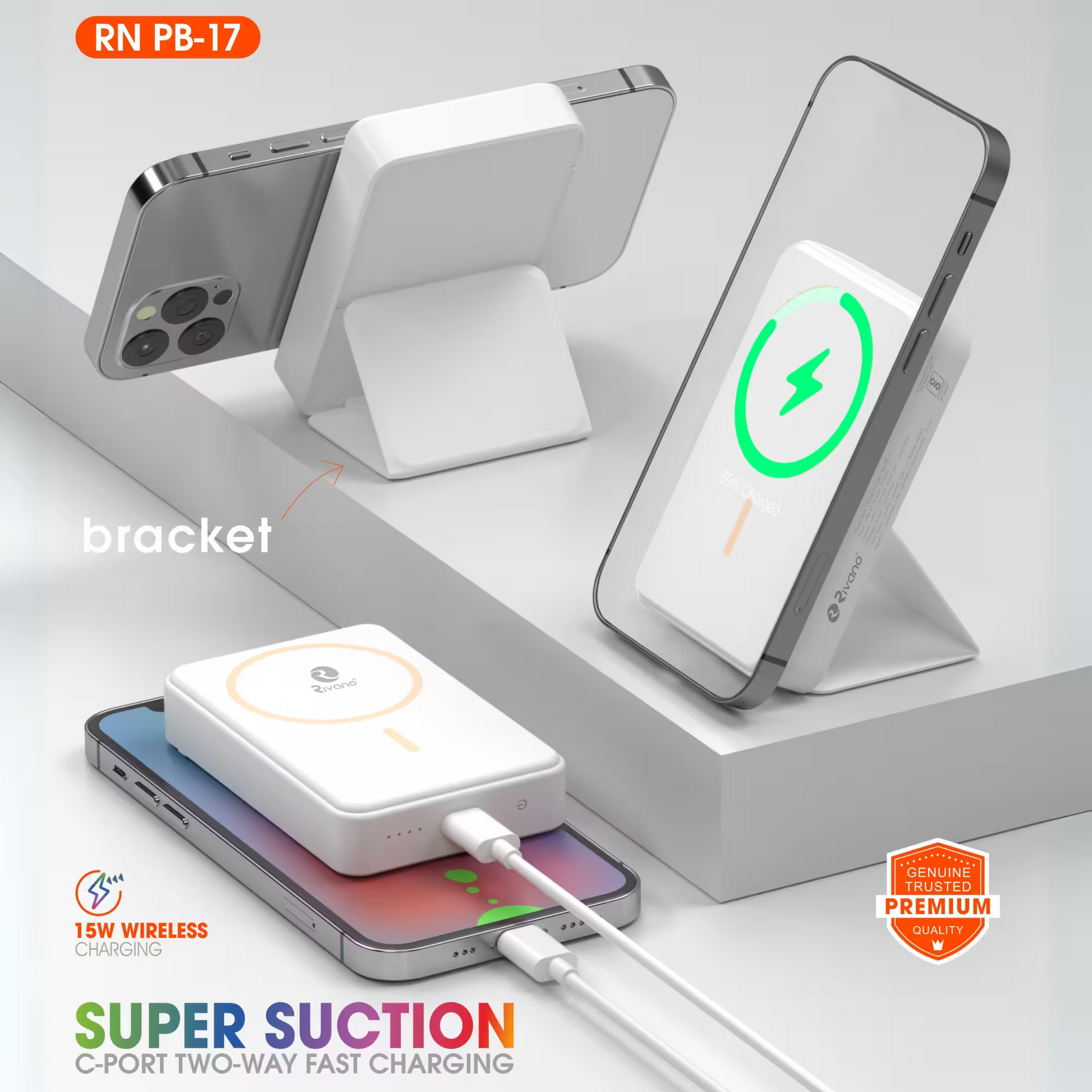 Rivano 10000mAh 22.5W Wired & Wireless With MagSafe Compact Pocket Size Power Bank WITH BRACKET